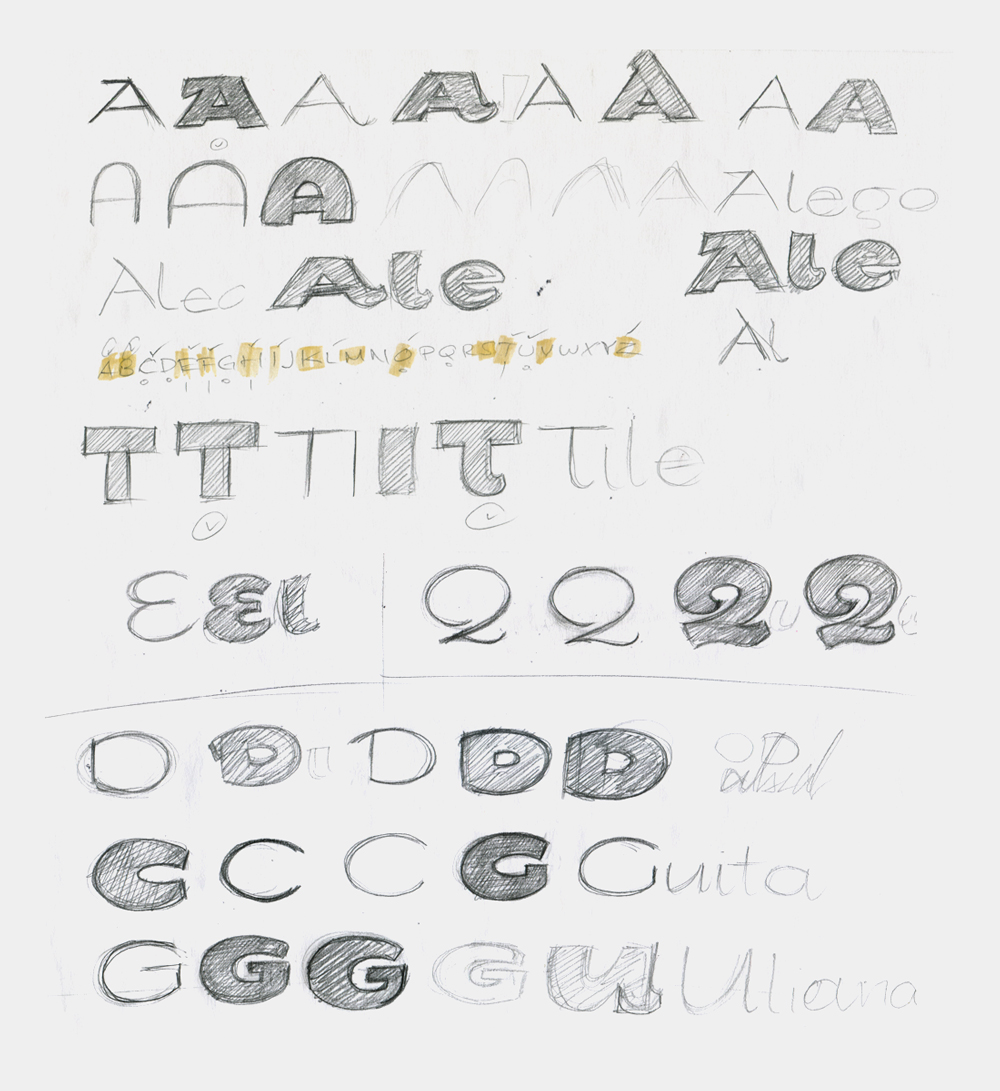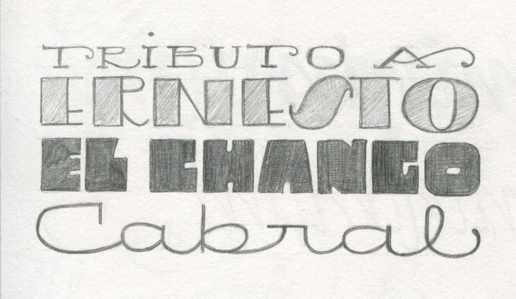 Tiempo atrás había realizado un boceto de letras inspiradas en el trabajo de Ernesto Cabral. Me pareció interesante trasladar algo de esos bocetos a una familia tipográfica, pero para ese momento solo tenía experiencia diseñando fuentes individuales como el alfabeto para el LMD y Cuatacho (basada en el logotipo de Memin Pinguín).