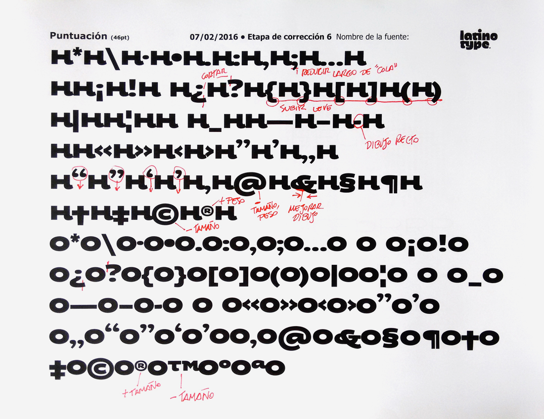 El proceso de digitalización y producción se hizo en Glyphs a solicitud de Latinotype. Hasta ese momento estaba acostumbrado al entorno de FontLab. Era la primera vez que tocaba este programa, pero gracias a sus tutoriales y foro tuve una curva de aprendizaje rápida y muy tersa.