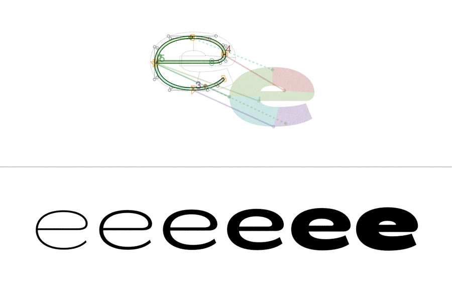 El app también resultó muy útil para agilizar la producción, diseñando primero las dos variantes extremas de peso y después trabajando en los caracteres de una variante intermedia para corregir los problemas de interpolación que se presentaron.