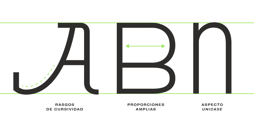 - Los caracteres debían tener una proporción amplia, como ese guiño de bonanza presente en la época y en sus referentes tipográficos.
