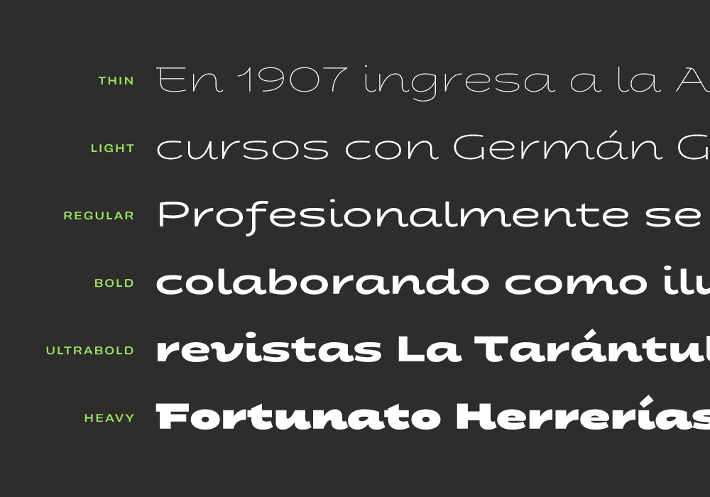 Refiné la idea intentando descubrir desde el papel como deberían de hermanarse dos pesos extremos, y los presenté al equipo de Latinotype como la premisa a distribuir. Estuvieron de acuerdo. Ahora debía descubrir como resolver el resto de los caracteres.