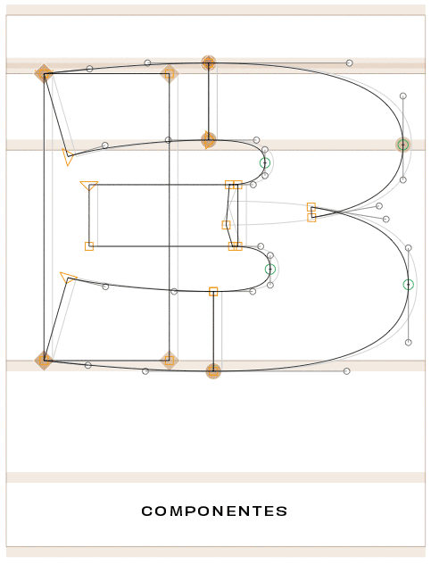 Durante la maestría me familiaricé con un proceso de diseño de caracteres por partes que debían de replicarse dentro el sistema para agilizar el proceso, una técnica que en Glyphs se resuelve fácilmente mediante el uso de componentes inteligentes.