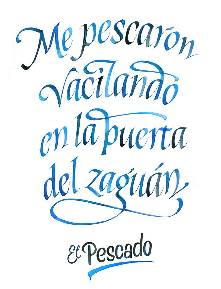 Tuve el gusto de ser invitado a participar en la exposición virtual Letras Arte y ¡Lotería!, donde fueron intervenidas las 54 cartas de la lotería mexicana por acuarelistas, calígrafos y letristas. En mi caso, me tocó intervenir la carta del Pescado, diseñada en estilo cancilleresco con tinta gouache, y firmado con un rótulo de trazo de pincel. El recorrido virtual está fabuloso, en especial en tiempos de confinamiento. Una gran iniciativa.