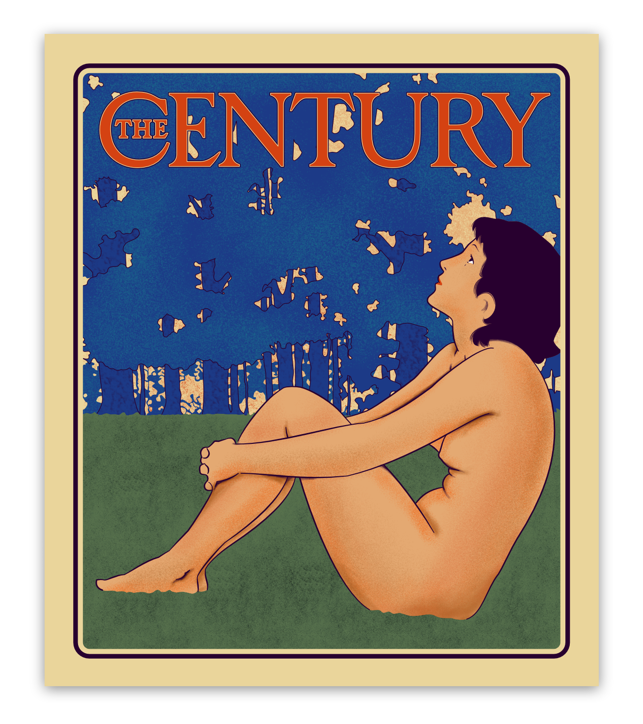Recreación digital con Affinity Designer de la ilustración y logotipo que aparecen en el póster “The Century: Midsummer Holiday Number: August / Maxfield Parrish”, creado y publicado por la compañía The Thomas & Wylie Lithographic Co., en Nueva York, ca. 1897.